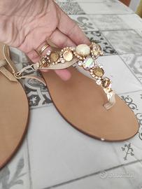 sandalo vera pelle con inserti di pietre