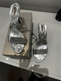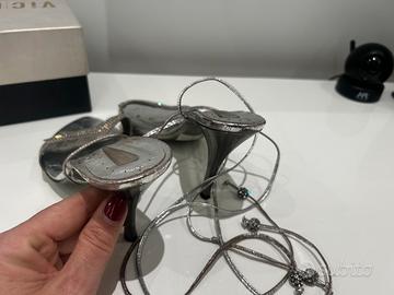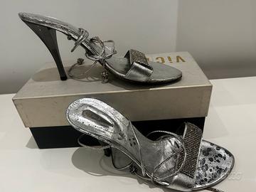 Sandalo Vic matie’ Silver tacco alto, con fascetta di Swarosky Taglia 40