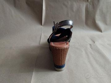 Sandalo zeppa Bata, di colore blu, scamosciato, da donna. Usato ma in ottime condizioni.