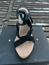 Sandalo nero con zeppa Sisley Numero 39 Mai indossato
