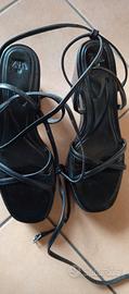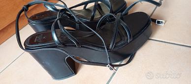 vendo causa inutilizzo comodissime zeppe sandalo estive con plateau Zara n.39 Total black. Modello "schiava" con laccio regolabile sia alto che basso a seconda della preferenza.