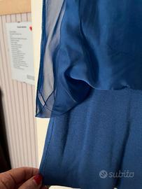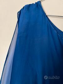 Sandro Ferrone, made in Italy, blusa elegante azzurra, L, ampia scollatura, ha la base elasticizzata per adattarla al corpo e consentire alla blusa di scendere morbida. Doppio velo sia davanti che dietro per evitare trasparenze