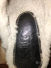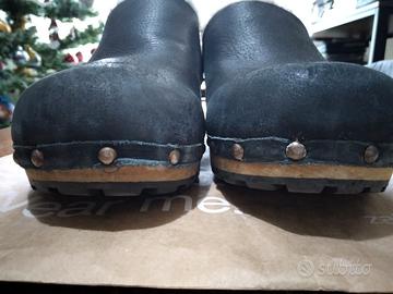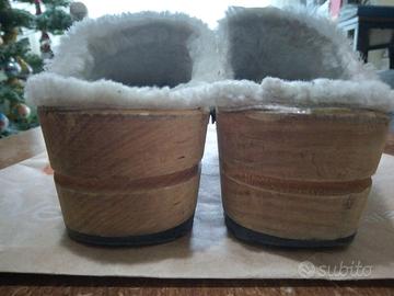 Design danese, calzatura confortevole senza chiusura, copertura in Nubuk, , imbottitura calda, suola in legno naturale.
