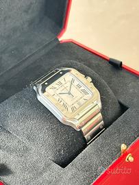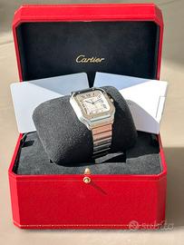 Cartier Santos large WSSA0018 del 05/2023 in acciaio con quadrante bianco opalino, funzione di sgancio rapido di bracciale e cinturino proprietario QuickSwitch e regolazione delle maglie SmartLink. Full set e condizioni eccellenti. Garanzia fino al 2031. Calibro di manifattura Cartier 1847 MC. WR 100m di impermeabilità. Possibilità di acquistare un secondo cinturino nero originale Cartier in pelle di alligatore a parte (+ €200) Solo ritiro a mano e pagamento con bonifico istantaneo al momento della consegna. Si accettano permute con orologi recenti (2022-2026) Rolex, Omega, IWC, Breitling, Zenith, Girard Perregaux, Chopard, Baume & Mercier, Longines, Tudor, Grand Seiko, Jaeger-LeCoultre, Glashütte Original.
