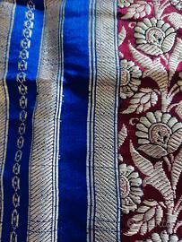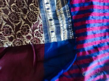 sari di seta preso in India anni 80 per cerimonia con fili d'argento misure MT.4,80 per 1,10 non rifinito al lato .mai usato