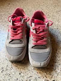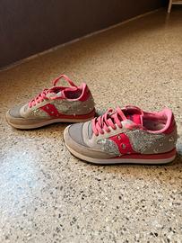 Vendo Saucony Jazz Original Special Edition – Taglia 36 Sneakers uniche dal look rock e glamour, perfette per chi vuole distinguersi. Modello Saucony Jazz Original in versione speciale con glitter, borchie e dettagli lucidi. Caratteristiche: * Colore grigio/argento glitter con dettagli corallo/fucsia * Inserti in glitter luminoso * Borchie coniche sul tallone * Logo laterale con punti luce * Calzata comoda, tipica Saucony Stato: ottime condizioni Ideali per dare carattere a qualsiasi outfit, dal casual all’elegante. Disponibile spedizione o consegna a mano.