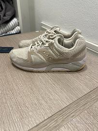Vendo bellissime sneakers Saucony Originals in colorazione beige/crema, perfette per ogni outfit grazie alla tonalità neutra. Il modello presenta una tomaia in camoscio (suede) di alta qualità e inserti in mesh traspirante