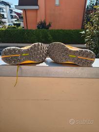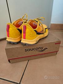 Vendo scarpe da trail running Saucony Peregrine 12 da donna, colorazione giallo acceso con dettagli rosa e neri. Modello tecnico eccellente, noto per la sua leggerezza e l'incredibile trazione su terreni difficili. Taglia: EU 38.5 (USA 7.5 | UK 5.5). Condizioni: Ottime condizioni generali. La suola PWRTRAC è quasi come nuova, con tacchetti ben definiti e pochissimi segni di usura (come visibile nelle foto ravvicinate). Caratteristiche: Ammortizzazione PWRRUN per il massimo comfort sui sentieri. Suola con grip aggressivo per fango, roccia e sterrato. Protezione integrata contro le rocce (rock plate). Tomaia leggera e traspirante. Note: Le scarpe vengono vendute con la loro scatola originale. Sono state pulite e igienizzate, pronte per correre! Perfette per chi cerca una scarpa reattiva e sicura per le uscite in montagna o su sentieri sterrati.