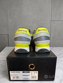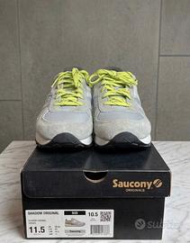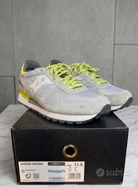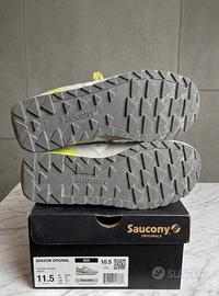 Vendo splendido paio di sneaker Saucony Shadow Original, colore grigio e giallo fluo, condizioni eccellenti! Praticamente nuove, indossate solo due volte reali (come si può vedere dalle foto) Vendo perché di misura non corretta per me. Le scarpe sono in condizioni impeccabili, ad eccezione di una piccolissima macchietta sulla parte anteriore esterna della scarpa destra, difetto presente dalla produzione, visibile in foto.