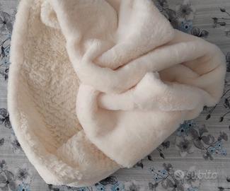 Scaldacollo / sciarpa ad anello color panna in materiale morbido e caldo da indossare in varie modalità. Mai indossato, misure nelle foto.