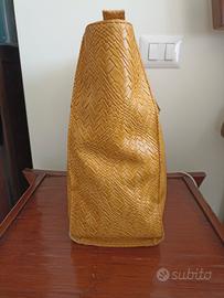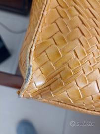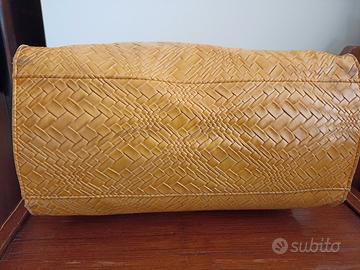 Scampolo in similpelle intrecciata (non vera pelle cocco ) color giallo/mustard, da recuperare dalla borsa in foto. Io spedisco la borsa intera.