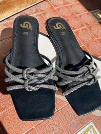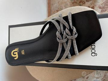 Sandalo basso con soletta vera pelle. Tomaia intrecciata ricoperta di strass color argento Numero 38 Nuove con scatola #gold&gold#sandalipelle#scarpedonna
