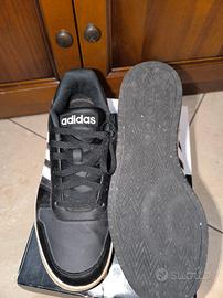 vendo scarpe usate Adidas Hoops 2.0 low nere con strisce bianche, taglia 45 1/3 Eu per inutilizzo