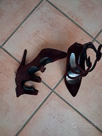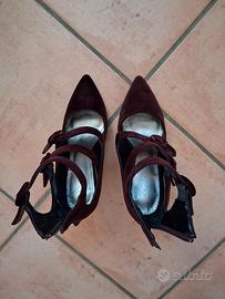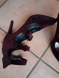 scarpa alta con 3 cinturini. color borgogna. elegantissima. ecopelle tipo velluto. Obsel