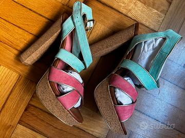 Mai usata Tacco 14,5 Incrociata davanti Verde menta e rosa cipria Marca la scala