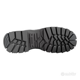 Calzatura bassa Mod "B", con tomaia in Nabuk idrorepellente e riporto antiusura in stark sulla punta. Fodera in membrana impermeabile traspirante con isolante termico. Imbottitura di protezione al malleolo. Puntale in Composit®, sottopiede antiperforazione tessile in Kevlar. Allacciatura mediante lacci passanti in occhielli o campanelle in metallo o in materiale plastico. Suola in gomma nitrilica antistatica, antiolio e antiscivolo. Lavorazione Ago.
