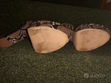 Scarpa aperta, in finta pelle, fantasia pitonata, numero 37, tacco 17 cm. Messe una sola volta in casa. Marchio CVG Gold.