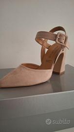 Scarpa nuova in pelle beige con tacco alto 7 cm.
