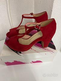 Scarpa aperta rossa n. 40 in pelle internamente, usata due volte
