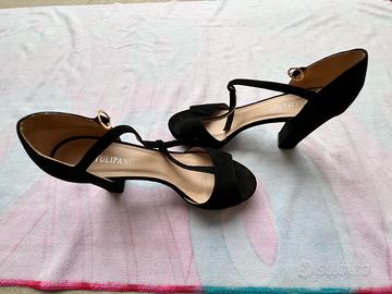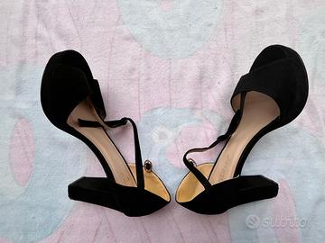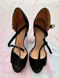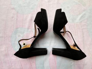 Scarpa aperta, colore nero con tacco 10 e chiusura a cinturino dorato. Semplice ed elegante. -spedizione in 24h-