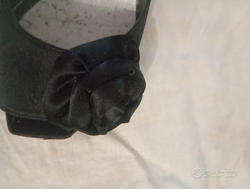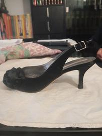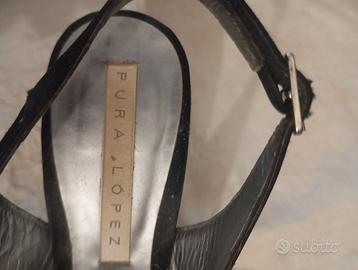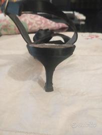 Elegante scarpa da donna colore nero in raso con suola in cuoio usate una sola volta. Marca Pura Lopez made in Italy. Taglia 36.5