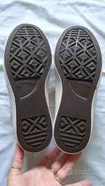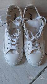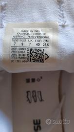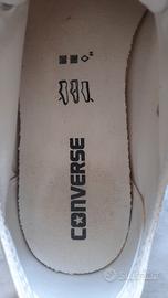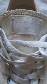 Indossate qualche volta ma ancora in ottime condizioni. Scarpe di tela basse sia per donna che per uomo colore bianco panna spalmato. Numero 40 (lunghezza 28 cm larghezza pianta 9,5 cm). Marca Converse