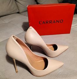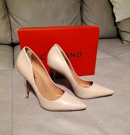 Décolleté raffinata in pelle beige, con tacco alto dorato a specchio da 11 cm che slancia la figura con eleganza. Il plantare imbottito offre comfort anche nelle occasioni più lunghe, mentre la suola in gomma garantisce stabilità. Perfetta per una cerimonia o per dare un tocco sofisticato ai tuoi outfit da giorno. taglia 38 ma veste stretta, ottima per 37.