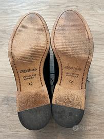 Vendo scarpa classica Melluso calzature numero 42. In pelle nera spazzolata. Usata pochissimo, nessun difetto, normali segni d’uso come visibile da fotografie. Pulite e igienizzate.