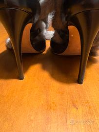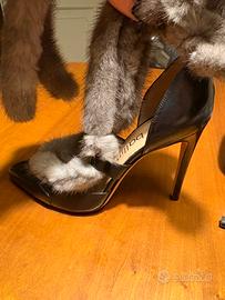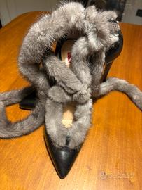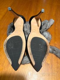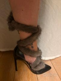 Non è una scarpa, ma un’opera d’arte, questo decolletè con tacco alto marca Ballin con incrocio in visone grigio. Pezzo unico usato per una sfilata.
