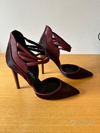 Elegante scarpa con tacco a spillo, in vera pelle e cavallino, suola in cuoio, del famoso calzaturificio veneto Ballin.