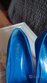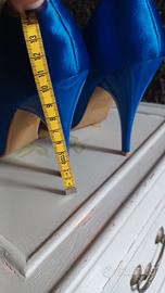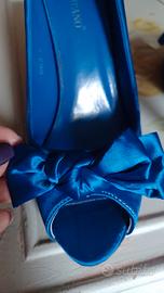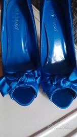 scarpa donna open toe con fiocco blu elettrico effetto raso tacco cm.10 marca tulipano taglia 39
