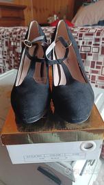scarpa scamosciata punta tonda cinturino alla caviglia tacco cm 10 mai indossate con tacchi di ricambio.