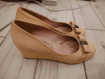 vendo con consegna a mano scarpa donna con zeppa colore Corda numero 41 Ferragamo usate ma tenute bene