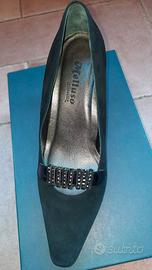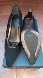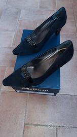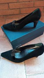 Scarpa donna decolte' in pelle nera scamosciata e decorazione - marca Melluso - nr. 37 - tacco 6 - fondo con gomma antiscivolo - ottimo stato