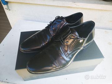 Vendo scarpa elegante da uomo da cerimonia, utilizzata una sola giornata, marca MIRAGE numero 42 e mezzo, colore NERO VERNICE LUCIDA, ottime condizioni. preferibilmente consegna a mano o per spedizione a carico dall'acquirente. Zona Teramo centro.