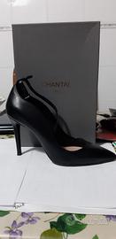 scarpa décolleté in nappa con laccio , colore nero . Tacco 10 cm marca Chantal 1962
