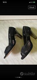 Scarpa decoltè, colore nero, effetto pizzo, numero 39, indossate solo una volta ad una cerimonia, senza scatola, particolare il tacco trasparente, altezza tacco cm 10 . Vero affare