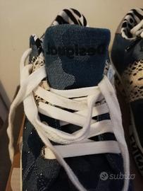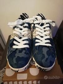 Scarpa marca Desigual In jeans con ricami in pizzo e inserti di perline.