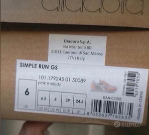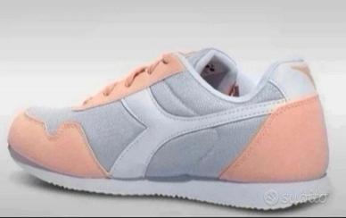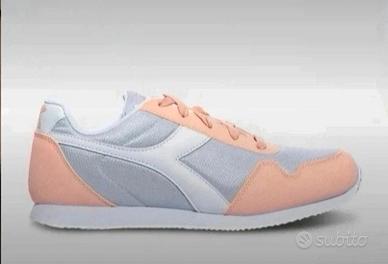Simple Run GS Diadora N. 39 Nuove! Bellissima Originali Diadora Sneakers Simple Run GS N. 39 Logo sulla linguetta. Chiusura con lacci. Colori: grigio, rosa e bianco Tomaia: tessuto e sintetico Fodera e soletta: tessuto Suola: gomma Colori chiari e delicati Bellissima!!! Originale Nuova Comoda pratica e leggera Vendo per inutilizzo