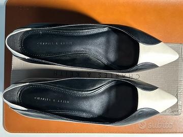 Charles & Keith scarpa donna modello ballerina a punta colore crema e nero tacco basso 1,5 cm.