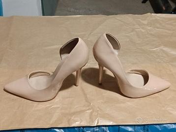 Scarpe da donna eleganti con decolte, color carne, verniciate, con tacco 12. Misura 39. Marca motivi. Usate ma ben ben conservato. Disponibilità a inviare altre foto e a farle visionare.