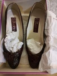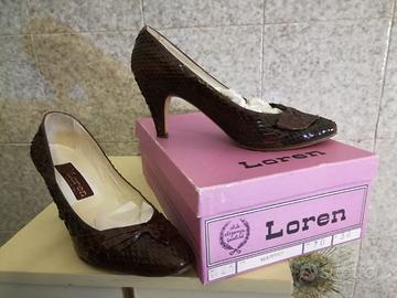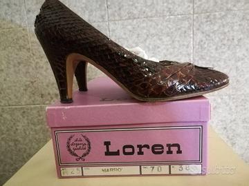 Si tratta di una scarpa molto comoda, ma anche tanto elegante. Un vero e proprio classico per signora che si sentirà avvolta in un modello confortevole a décolleté con materiale pitonato antico assai prestigioso con punta romantica e tacco estremamente comodo per lunghe passeggiate senza avere dolori o sindromi da alluce valgo. Sono, come da chiare foto a corredo, rigorosamente nuove e tenute sempre in modo assolutamente maniacale. Sono un modello veramente esclusivo.