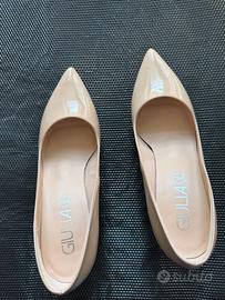 Scarpa donna decolte vernice colore beige/nudo tg.38 tacco cm.8,5 marca Giulia