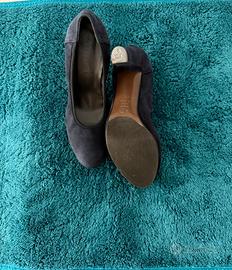 Scarpa donna decolte camoscio colore blu tg.37,5 tacco cm.8,5 marca Barracuda's