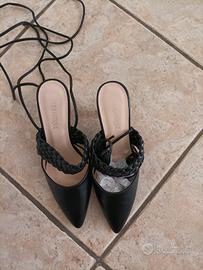 Scarpa donna 37 tacco basso nero Elegante da legare in caviglia Mai messe