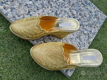 babouche Saada da donna, numero 40, oro, nuove, mai usate, originali.