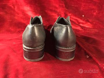 Scarpe donna taglia 35 in pelle nera chiuse elasticizzate sul dorso con due ali laterali in pelle e suola in gomma alta carenata, marca WHY NOT made in Italy. Usate pochissimo come nuove vedi foto.