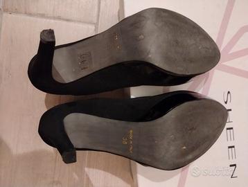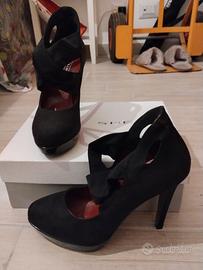 Scarpa donna in velluto, nastro di raso incrociato sul davanti, tg 38. Con plateau di 2 cm e tacco 12. Indossate pochissimo. Consegna a mano