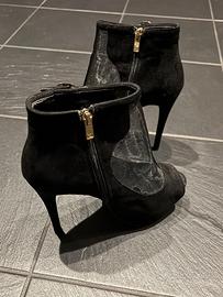 Stivaletto donna spuntato in velluto nero ed effetto rete. Indossato 4-5 volte. Altezza tacco 12 cm . Numero 40.