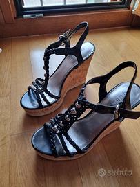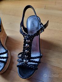 Sandalo con zeppa in sughero e lacci neri in pelle GUESS